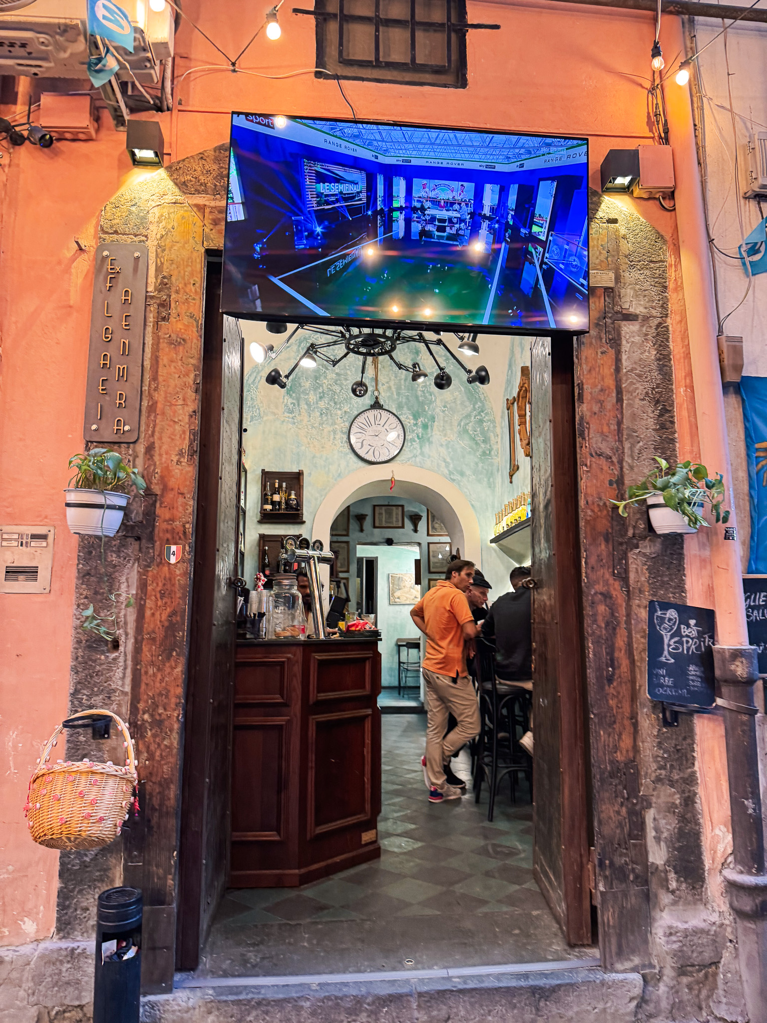 This spot totally charmed us. Tucked on a side street with glowing lanterns and a vintage vibe, they deliver your drinks in a little basket—alongside snacks, of course (this is Italy, after all). Creative cocktails, great energy, and a perfect place to wind down before dinner.