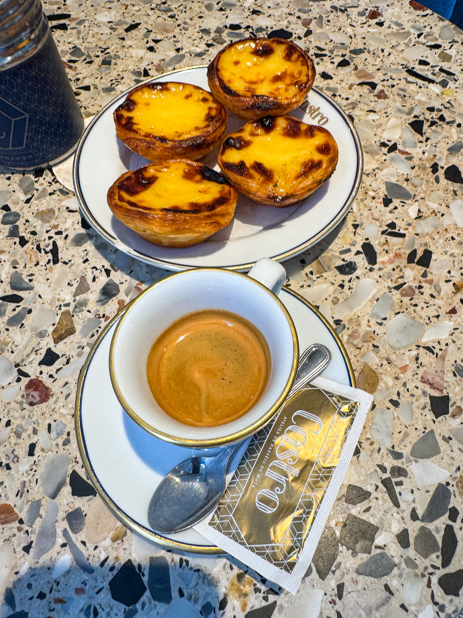 - Castro – Our personal favorite. The balance here is just right — sweet, but not too sweet, with a crust that’s flaky but not dry. More boutique and low-key vibe than Manteigaria, which we appreciated.