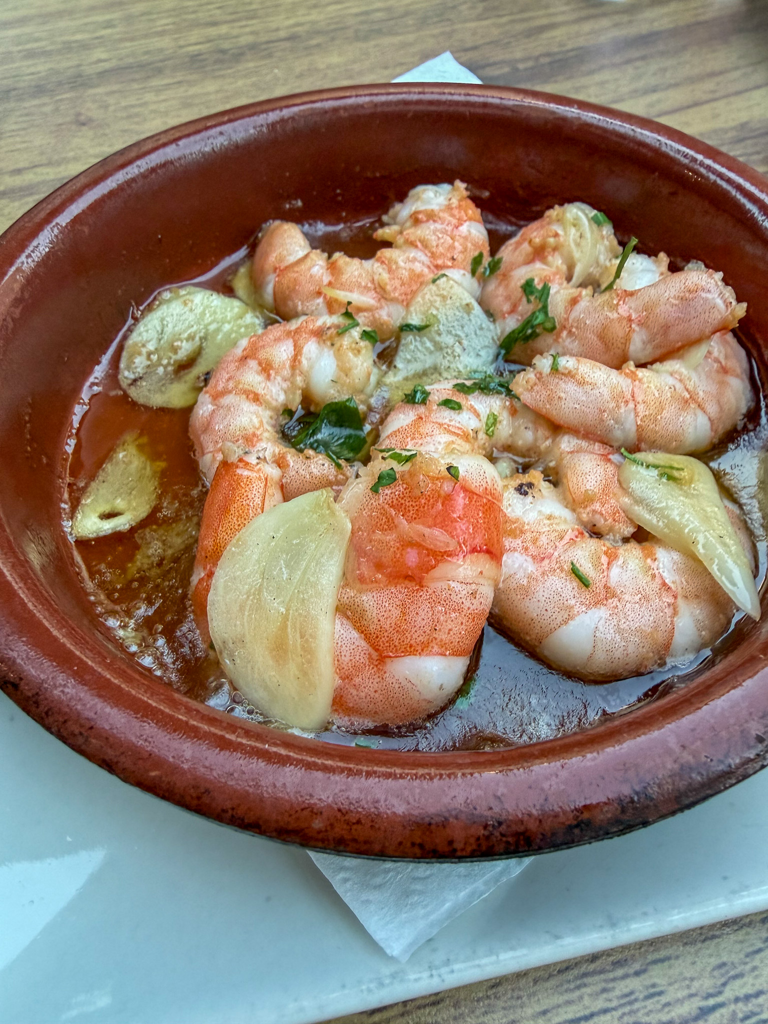 - Alcázar Andalusí Tapas — beautiful outdoor patio right near the Alcázar. Garlic prawns, eggplant (incredible — order it), and paella. The right move for a first dinner in the city. Sit outside if you can.