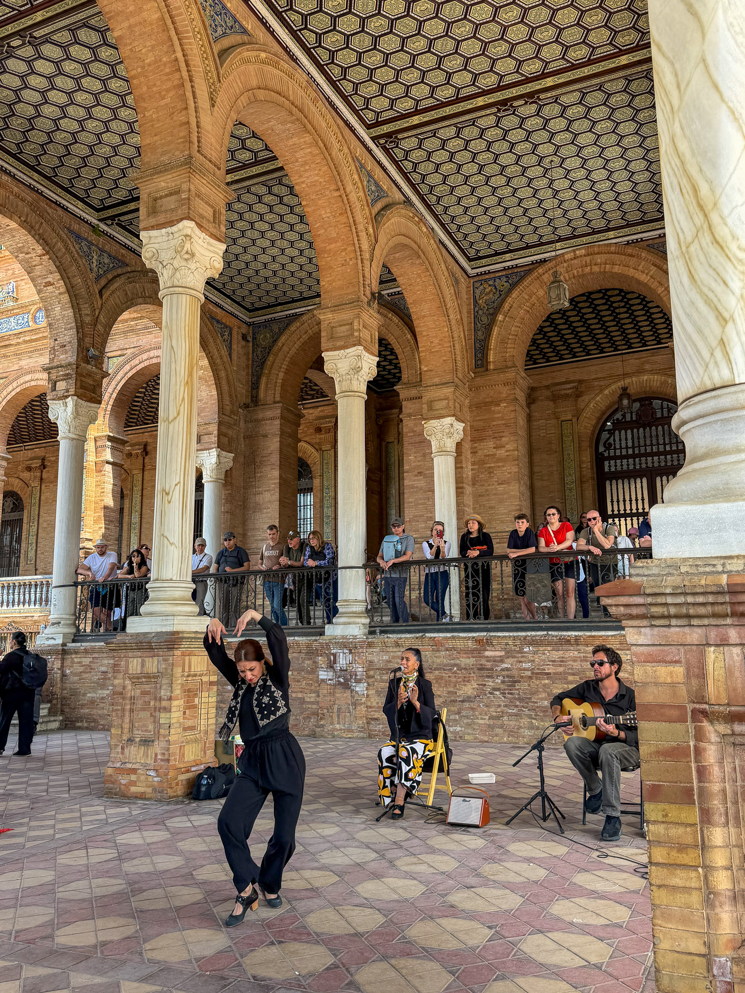 Built for the 1929 Ibero-American Exposition, Plaza de España is spectacular from every angle — the sweeping tiled semi-circular promenade, ornate bridges, a canal running through the middle, and hand-painted ceramic panels representing every Spanish province. The blue and gold tiles are exactly the kind of color that photographs beautifully and looks even better in person. While we were there, a flamenco performance started up in the plaza — one of those spontaneous travel moments that happen in a beautiful setting and just stay with you. Free to visit. Don’t rush it.
