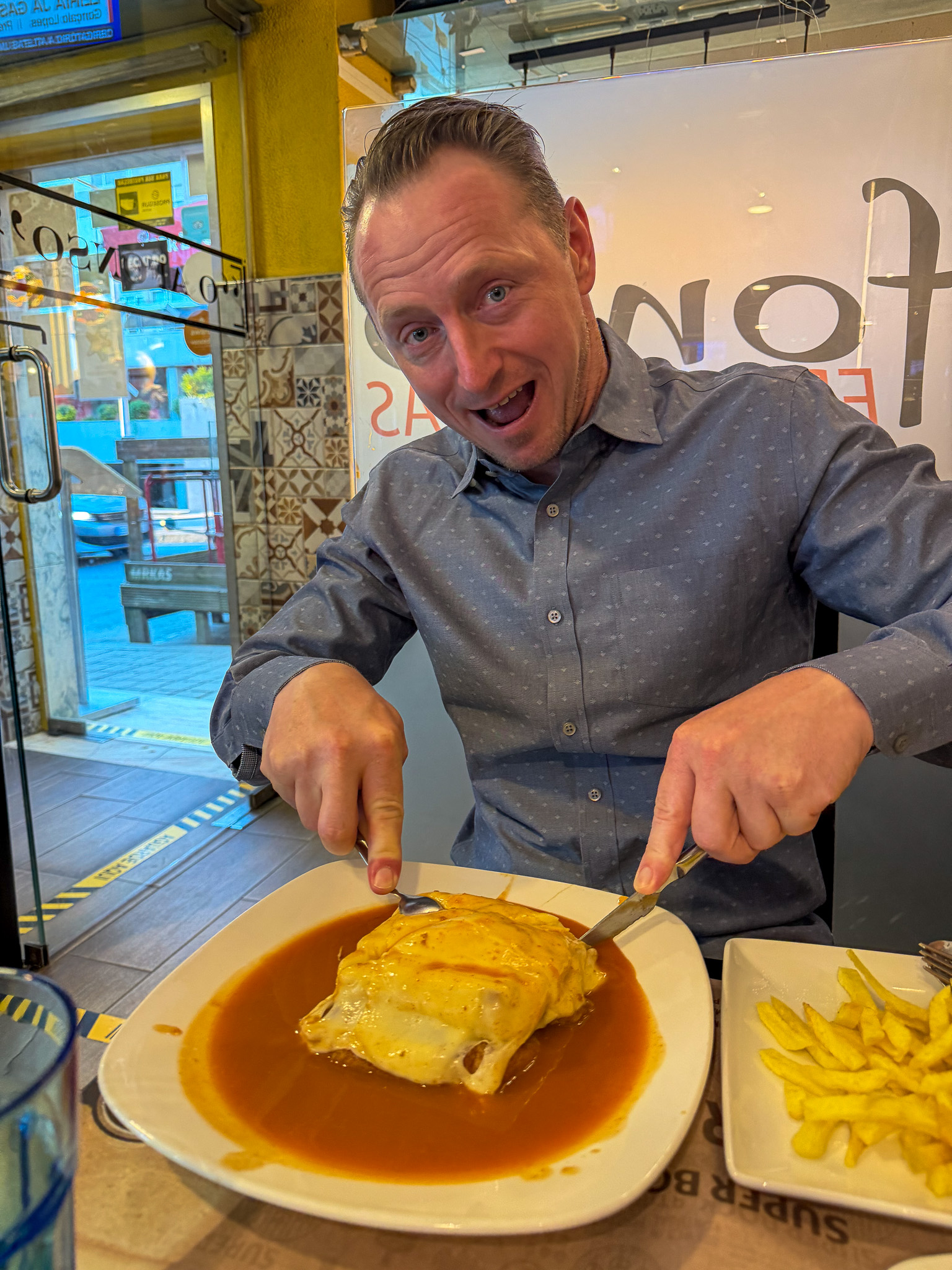 - O Afonso – Known for one of Porto’s best francesinhas — cheesy, meaty, saucy, and worth every bite. This is our go-to when we’re craving a francesinha, we love the tangy tomato beer sauce with just the right kick. Classic, no-frills interior but packed with locals and an Anthony Bourdain favorite.